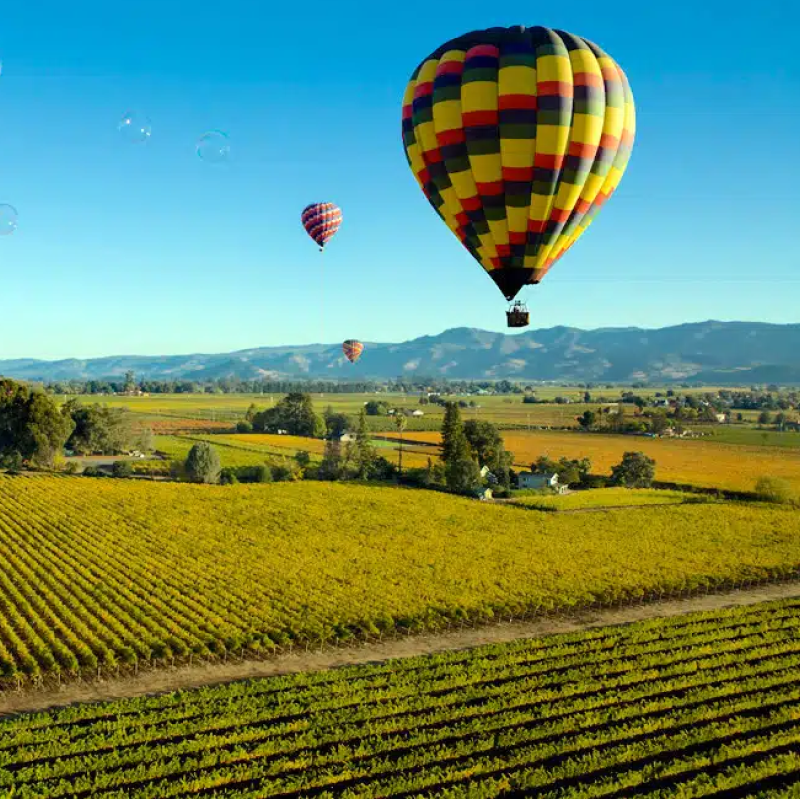 Discover Napa Valley like never before with an exciting hot air balloon flight. Soar above the breathtaking landscapes of the wine country, taking in unrivaled views that only a hot air balloon can provide. Your journey begins with a warm greeting of freshly brewed beverages and artisanal pastries, setting the stage for an extraordinary experience.